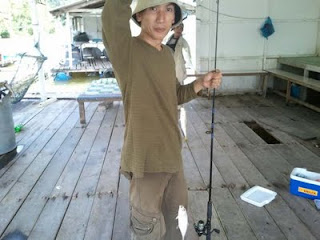His second one, a 1kg Barramundi using same lure...but his line cut by the fish gill slit. Anyway manage to get the fish. Total weight he caught was 1.2kg.